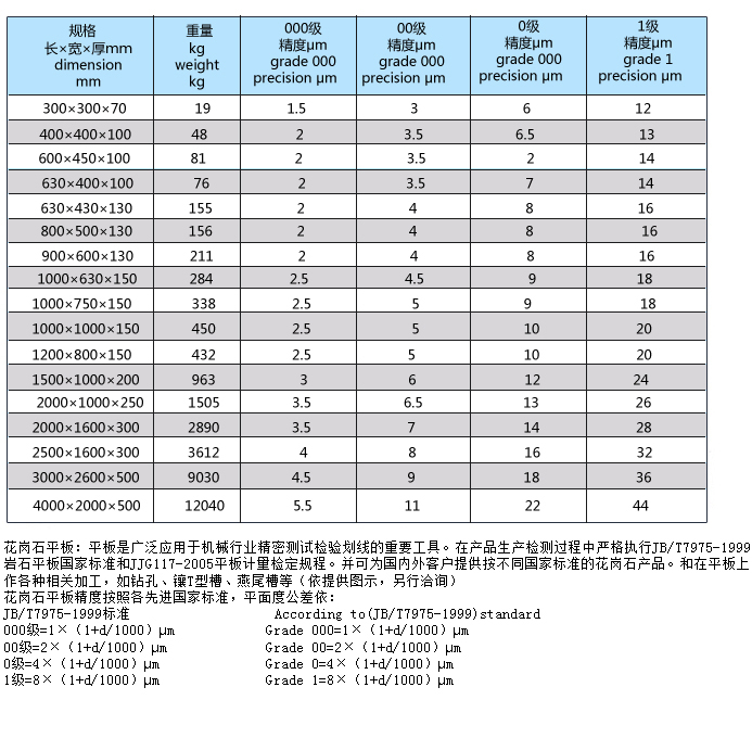 ★花崗石平板精度參照各先進(jìn)國家標(biāo)準(zhǔn),平面度公差依: